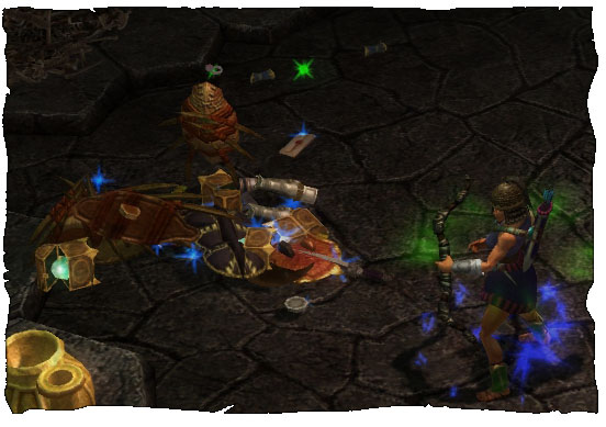 Nous nous servons largement et reprenons le portail de Perséphone pour retourner dans le monde des vivants et prendre la route de Rhodes pour récupérer ce passage curieux. Effectivement la clé ouvre la grille et nous empruntons un sentier étroit jusqu'à une sorte de temple. Dedans, outre les constructions nous faisant penser tout à tour à la Grèce , l' Egypte , l' Orient et les Enfers , nous trouvons des monstres curieux que nous tuerons tour à tour. Nous y trouverons un cauchemar immortel, une grosse tortue qu'on tue car elle a tord, une furie furieuse, un centaure ceinturé, un Antéok toqué, des démons vite démontés, un squelette, un satyre qui quand on lui tire dessus, laisse s'échapper un Toxée très toxique, une Hydre miniature, un Tigrou qui saute partout, un buisson sautant plus qu'ardent, une boule de feu sur pattes, et enfin un mini Tyty aussi inoffensif qu'un grosminet. Mais la grosse surprise sera un coffre dans lequel nous aurions tous pu entrer sans se courber … beau cadeau, non ???